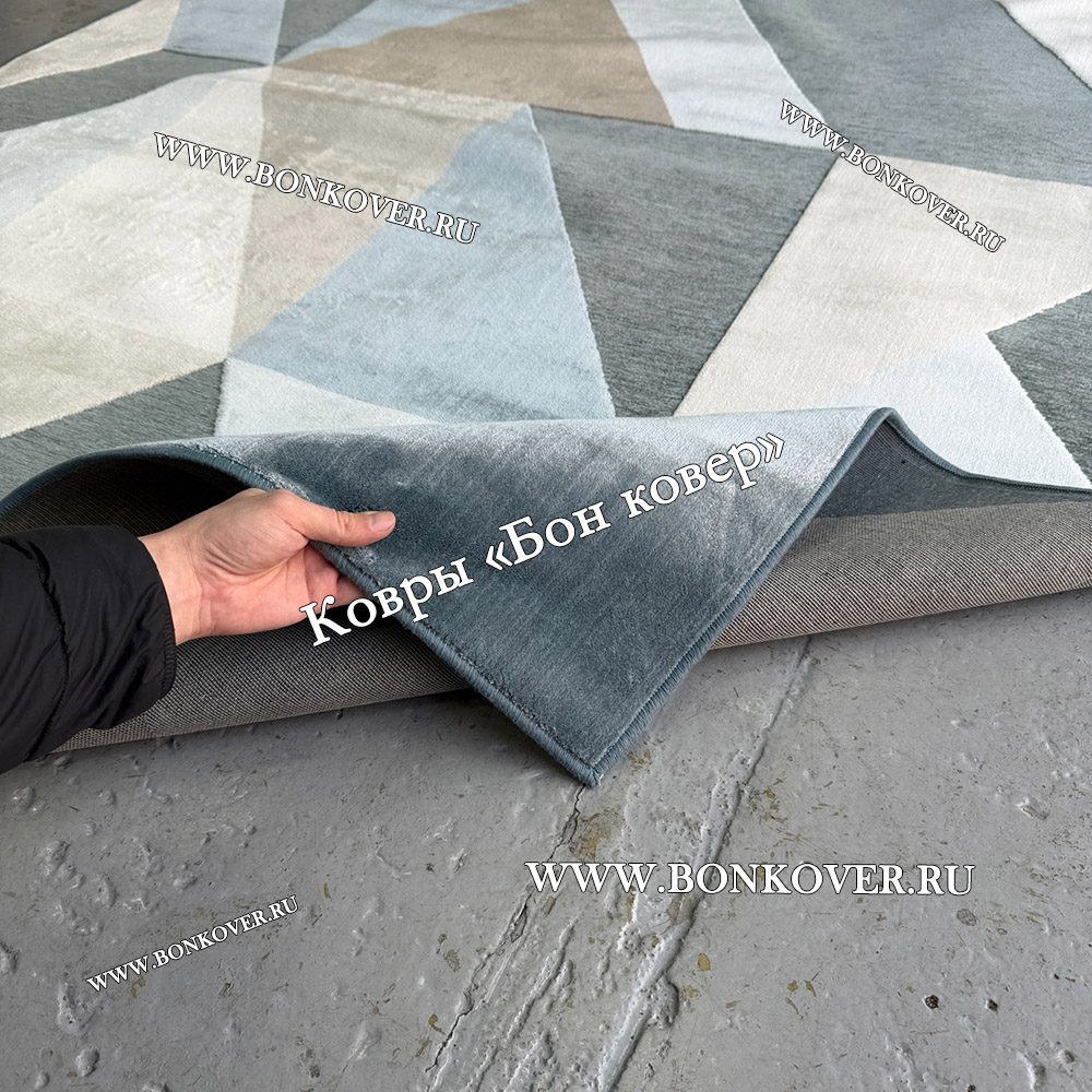 Красивый Геометрический Ковер Из Вискозы Дизайн 21617 наполняет интерьер комнаты теплом и уютом, гармонично сочетает в себе изящество и красоту. Он создан из износостойких материалов, прочный и долговечный.